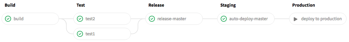 .gitlab-ci.ymlThe flow of deploying code to servers through various stages: e.g. development to staging to production - Project Pipeline: Cross-project CI dependencies triggered via API, particularly for micro-services, but also for complicated build dependencies: e.g. api -> front-end, ce/ee -> omnibus.